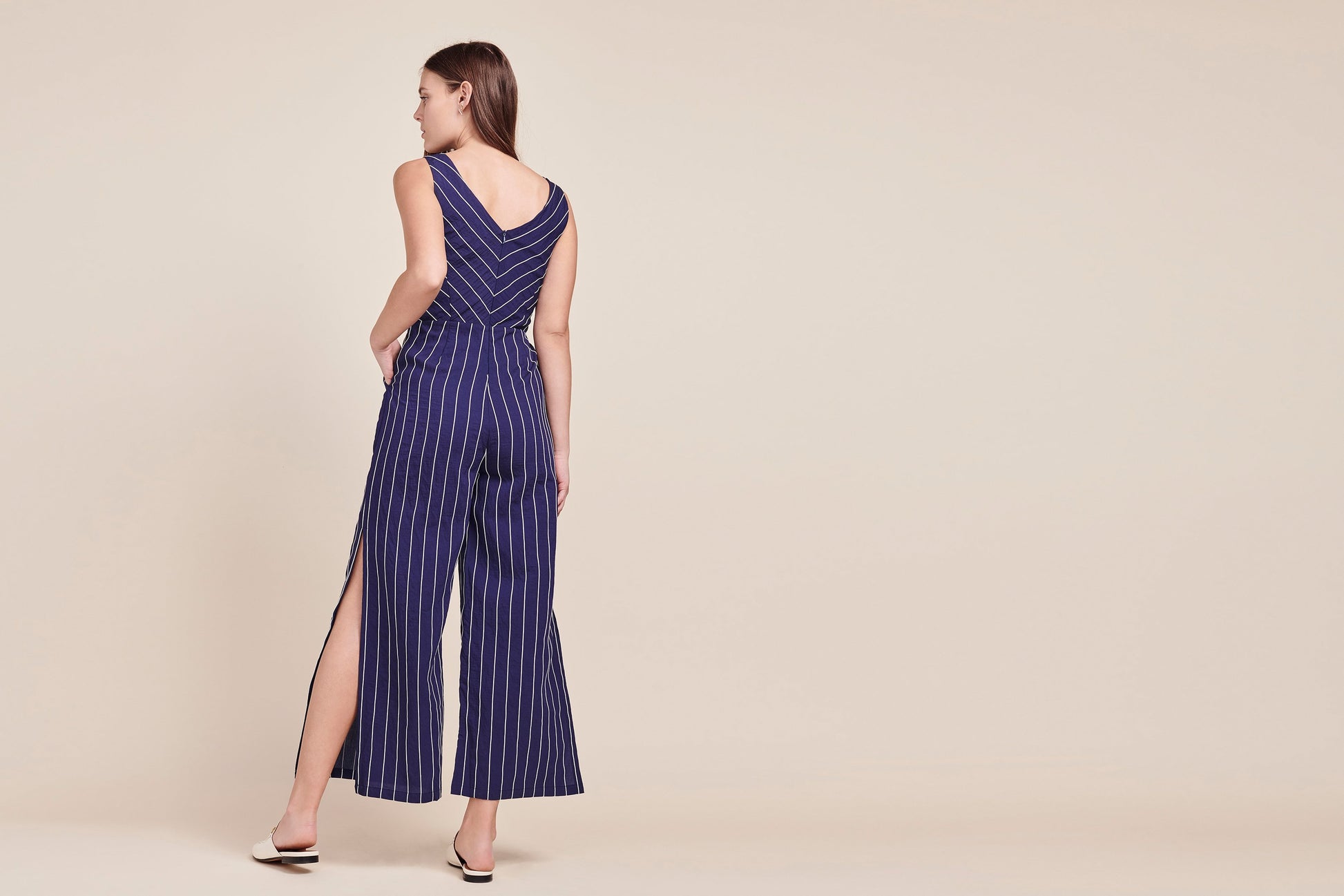 Embroidered Pinstripe Jumpsuit