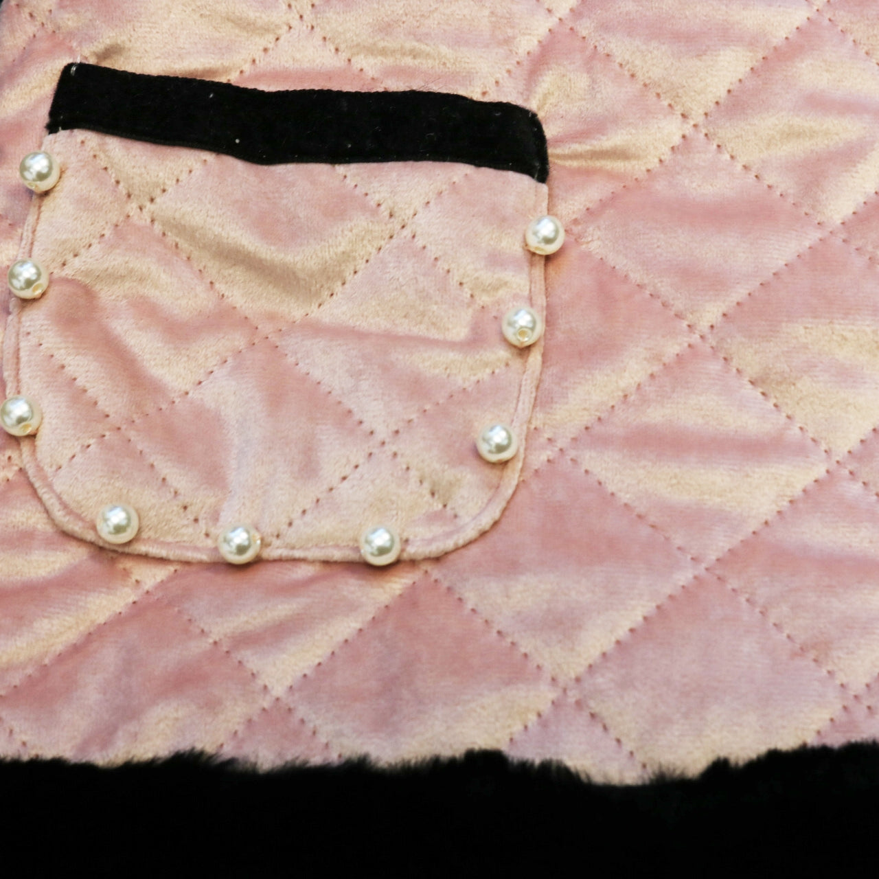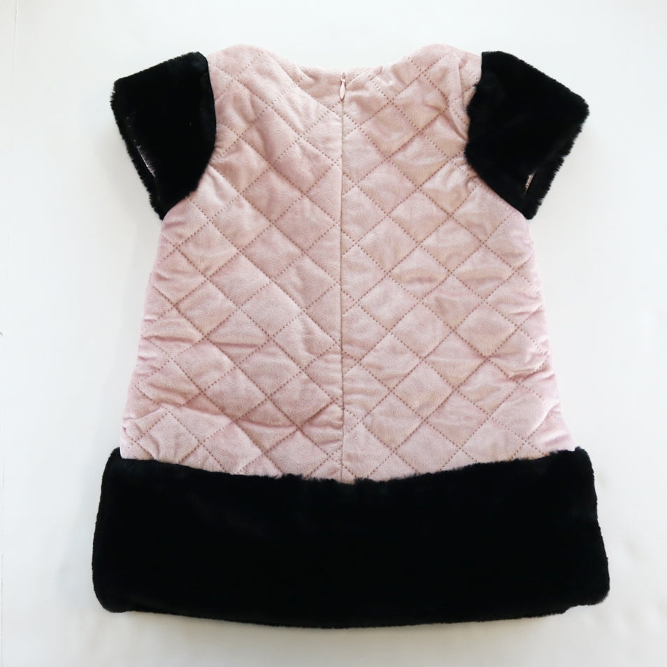 Sweet and sophisticated, this Girls’ Faux Suede Quilted Fur Trim Dress is an instant showstopper. In a soft blush-pink faux suede, it’s detailed with a quilted texture, black faux fur trim, and delicate pearl embellishments for a touch of timeless elegance. The cozy-yet-polished design makes it as comfortable as it is adorable, perfect for keeping her stylish through the cooler months.