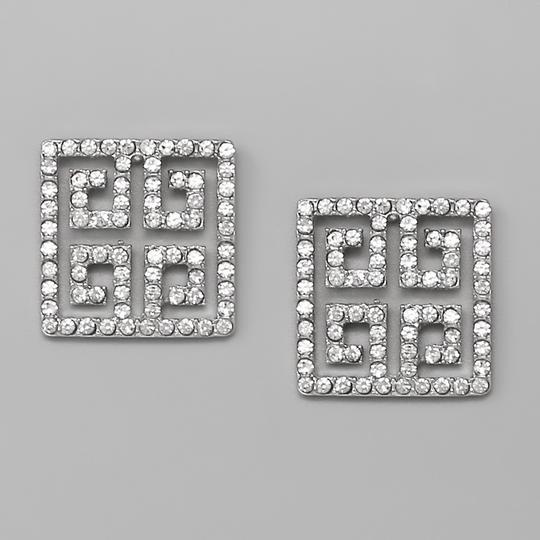 Greek Pattern Glass Stone Embellished Studs - Silver