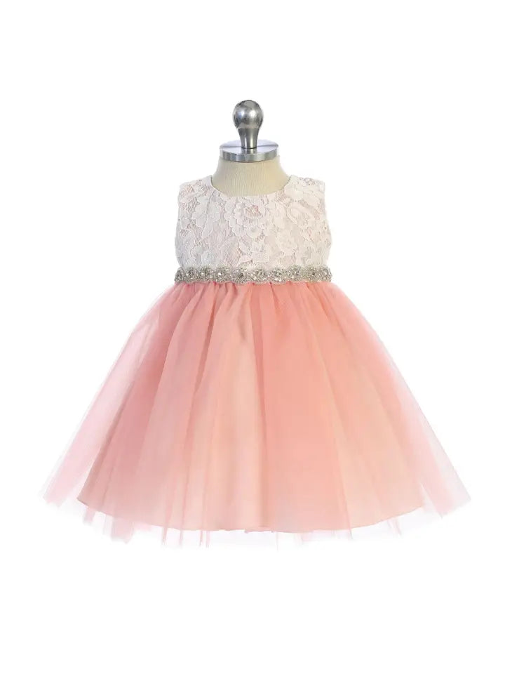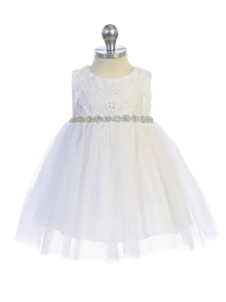 Infant Formal Dress with Lace Top & Rhinestone Trim