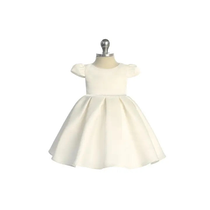 Infant Pleated Dress w/Pearl & Rhinestone Trim Ivory