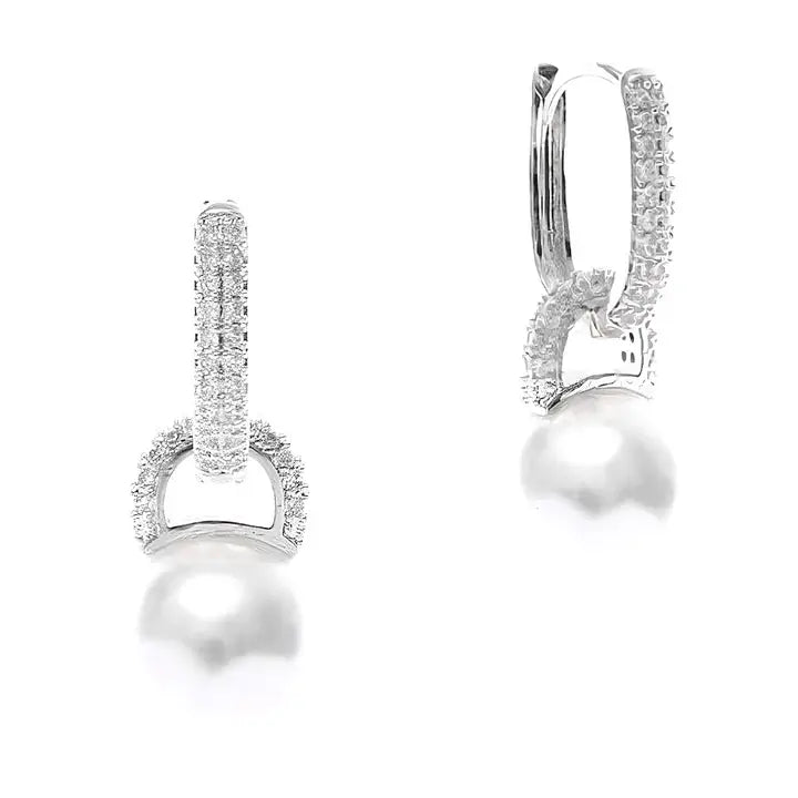 Pearl chain earrings, statement earrings for formal events, CZ and pearl drop earrings, bridal party accessories, elegant earrings for special occasions.