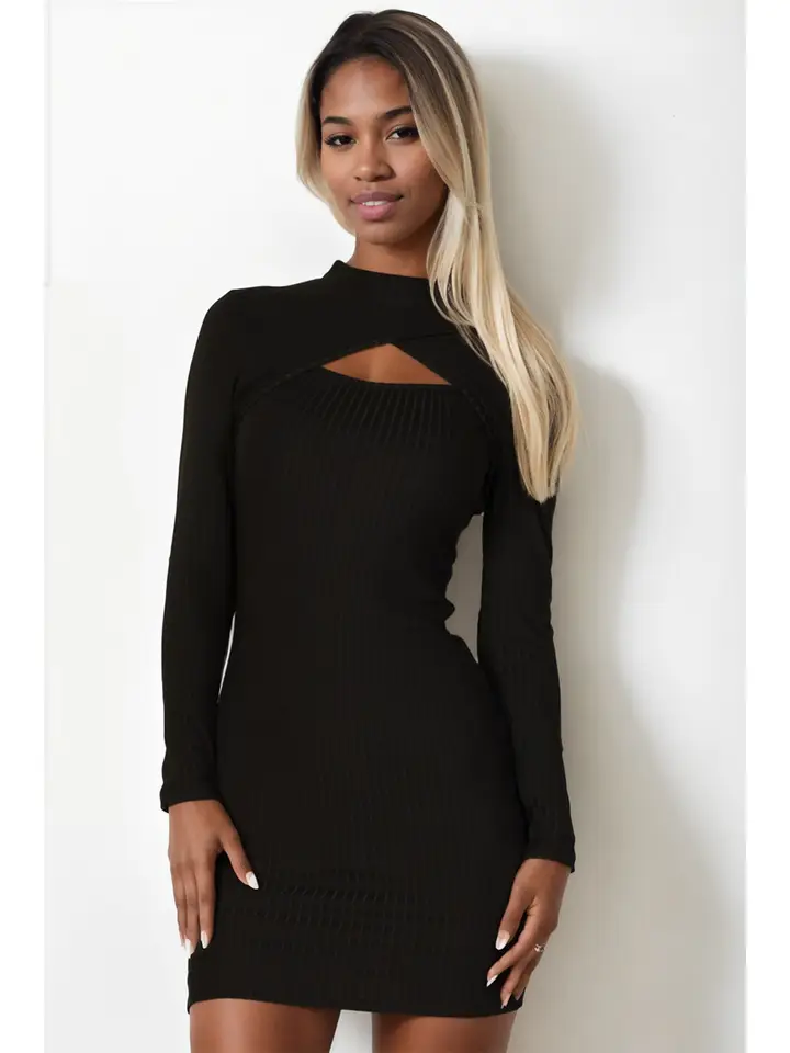 Long Sleeve Ribbed Cut-Out Bodycon Dress