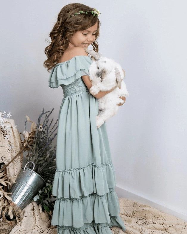 Mommy & Me Ruffle Tiered Maxi Dress – Toddler (Sage or Beige)