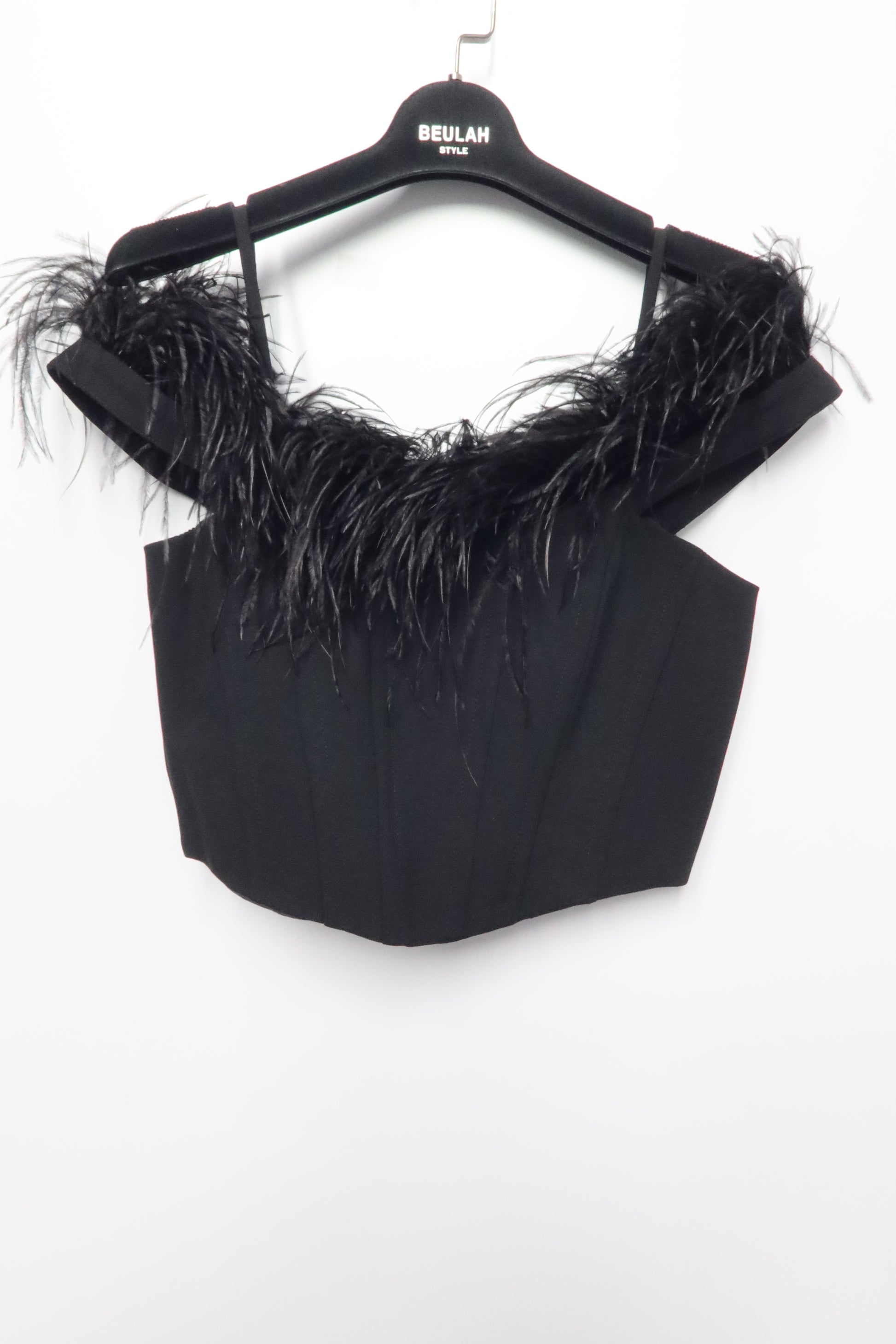 Ostrich Feather Off-Shoulder Corset Crop Top