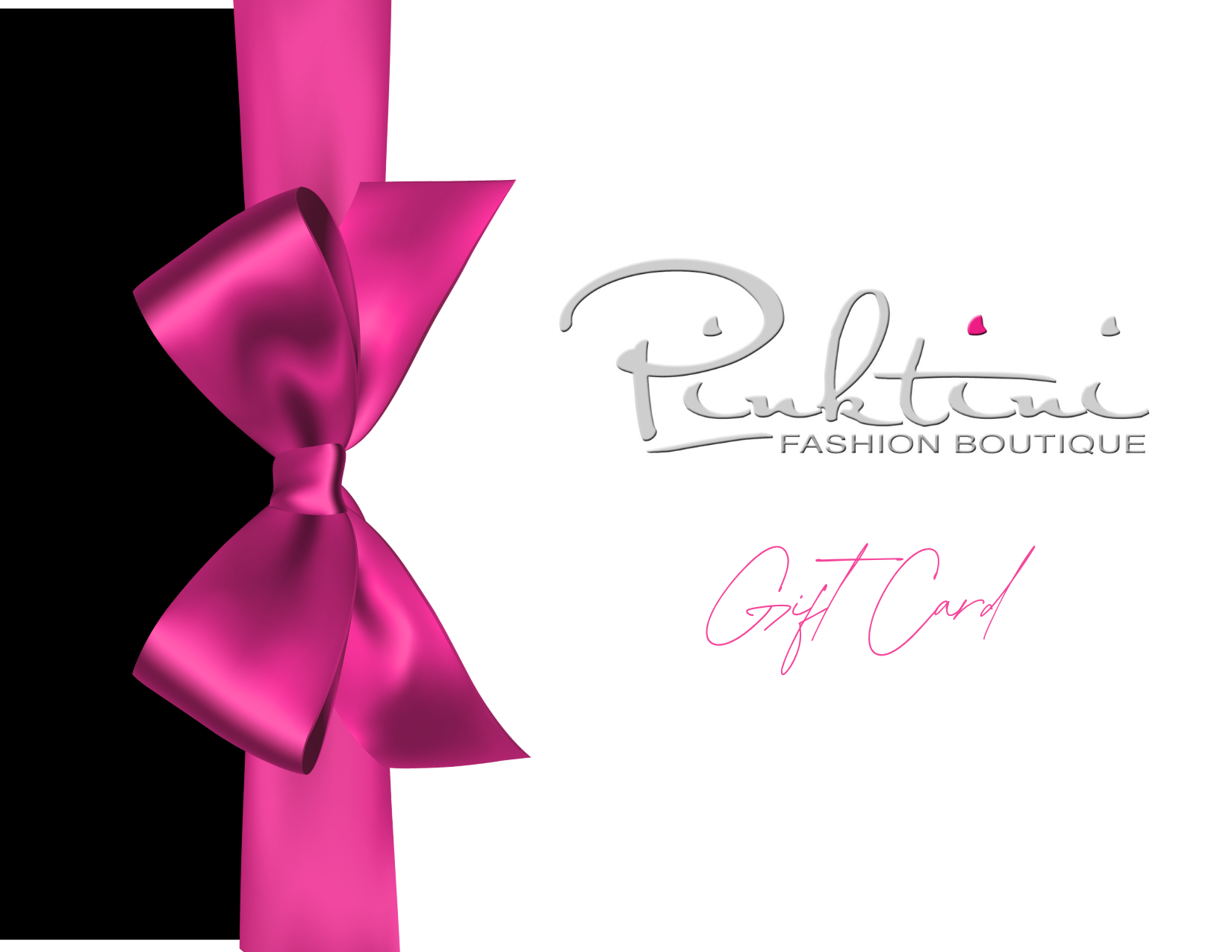 Not sure what size, color, or style they'll love most? Let them choose with a Pinktini Fashion Boutique Gift Card — the perfect present for birthdays, holidays, baby showers, graduations, or just because.