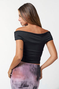 Designed with a flattering off-the-shoulder neckline and a unique twist-front detail, this top adds just the right amount of edge to any outfit.