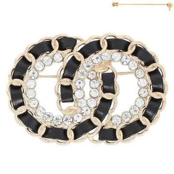 Elevate your accessories game with our Woven Chain Rhinestone Pavé Linked Circles Brooch—a sophisticated statement piece designed to dazzle. Interlocking circular links are embellished with shimmering pavé rhinestones and woven metallic chain detailing, blending classic glam with a modern edge. Pin it to blazers, coats, scarves, or even a handbag for a touch of sparkle and timeless elegance.